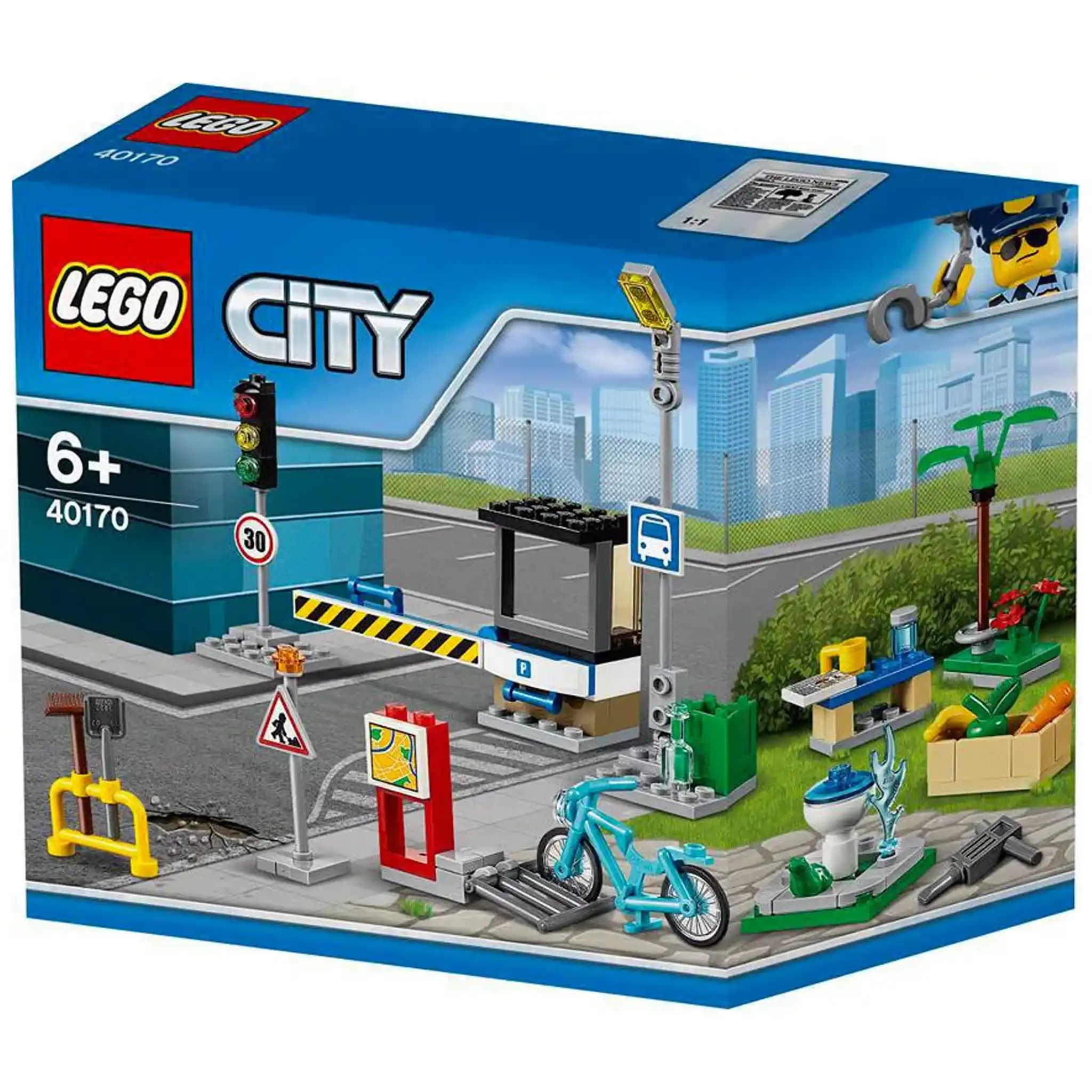 Les enfants vont pouvoir agrandir leurs villes LEGO® City avec cet ensemble d’accessoires, qui comprend un lampadaire, un feu tricolore, un râtelier à vélos, une fontaine, de la végétation, un poste de contrôle avec une barrière ainsi que d’autres éléments qui leur permettront de jouer pendant des heures.