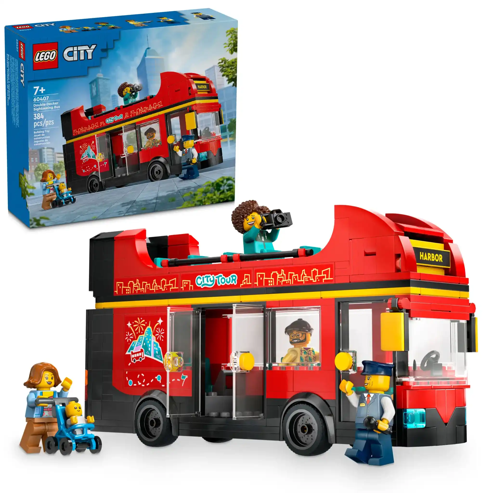 Offrez aux enfants dès 7 ans des aventures amusantes avec Le bus rouge à deux étages LEGO® City (60407). Ils peuvent faire tourner l’affichage de la destination, faire monter les passagers et les installer en bas ou à l’étage supérieur ouvert. Ce modèle constitue un superbe objet de décoration et inclut 5 minifigurines, dont un bébé avec une poussette, favorisant la narration et le jeu créatif.
