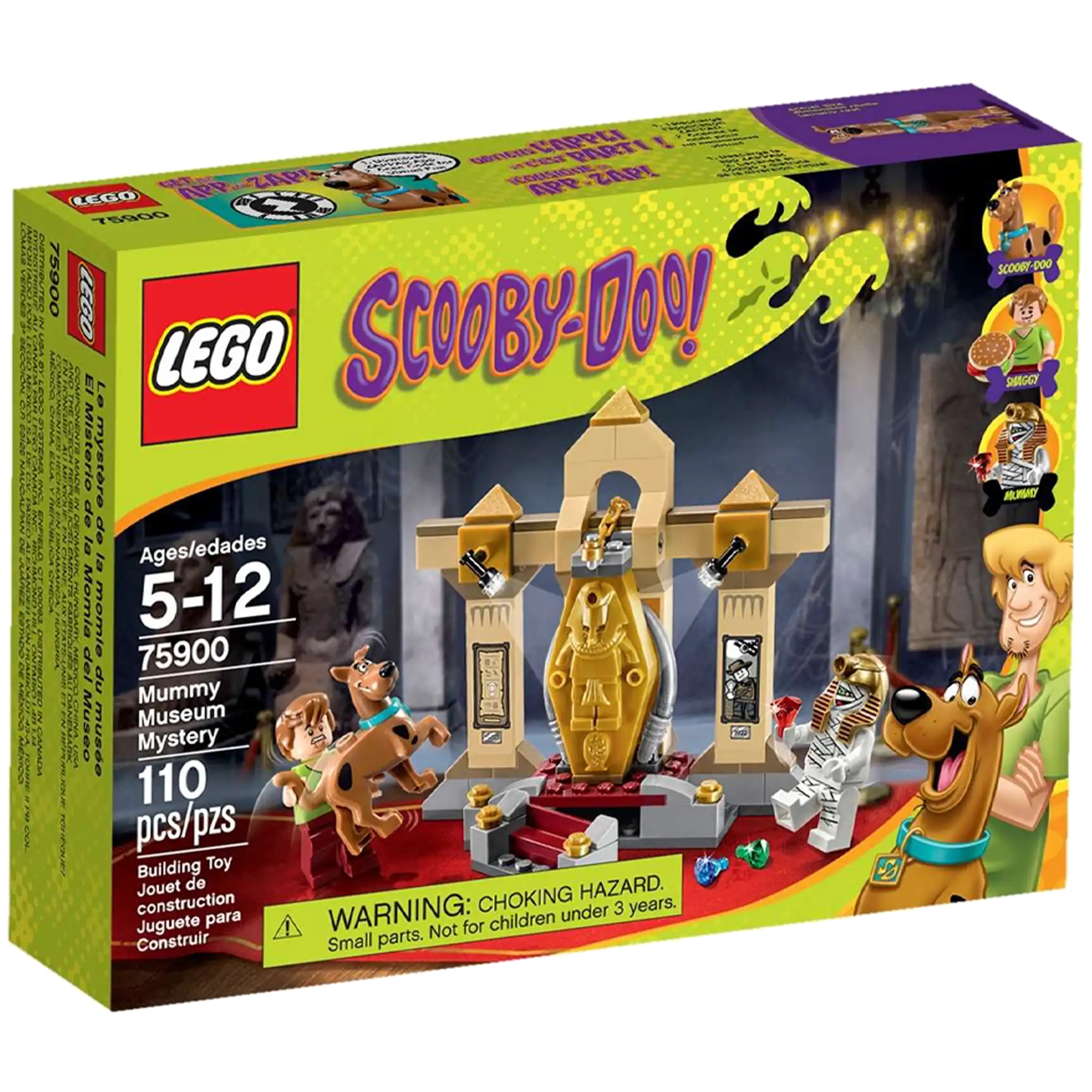 Entre dans le musée effrayant avec Scooby-Doo et Sammy et résous le mystère des joyaux disparus ! Oulala, quel endroit terrifiant ! Nos héros ont peur… et faim, comme d’habitude ! Mais attendez ! Ont-ils des visions ou bien est-ce un hamburger accroché au plafond ? Atteins le hamburger pour ouvrir par accident le sarcophage doré ou enlève la coiffure de la momie pour révéler le cerveau à l’origine du vol. Ouvre ensuite la porte secrète dans les escaliers pour révéler le trésor caché ! Comprend2 figurines : Sammy et la momie/ Dr. Najib avec un accessoire, plus Scooby-Doo (version debout).