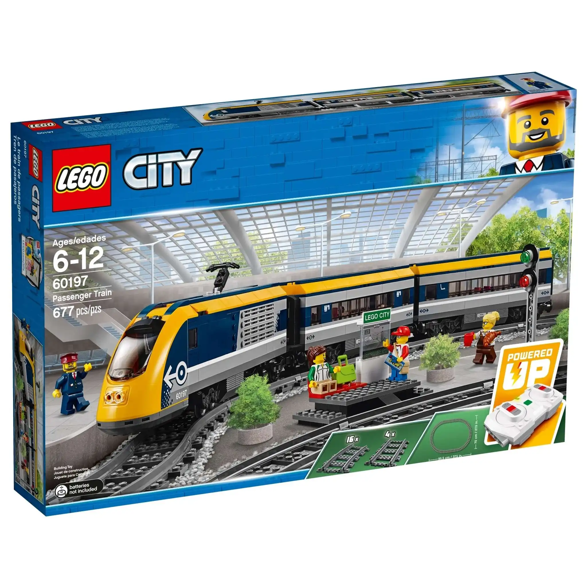 Départ immédiat pour le train de passagers télécommandé LEGO® City 60197 ! Cet ensemble amusant comprend une locomotive motorisée avec une télécommande Bluetooth 10 vitesses, un avant de train qui s’ouvre, une cabine pour le conducteur avec une fenêtre qui s’ouvre, 2 wagons avec toit amovible, des sièges et des tables, un circuit complet ovale avec 16 rails incurvés et 4 rails droits, ainsi qu’un quai à construire avec 2 sièges et une carte des services ferroviaires, une signalisation pour le train et 4 figurines LEGO.